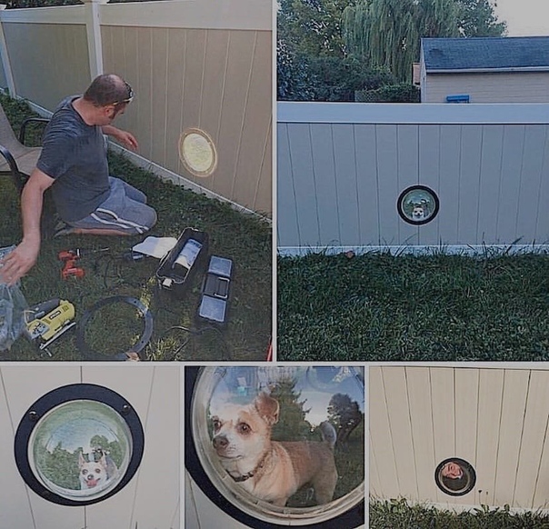 Пёсель-разведчик, настолько любил наблюдать за соседями, что его семья сделала для него специальное окошко в заборе Ну круто же...?)